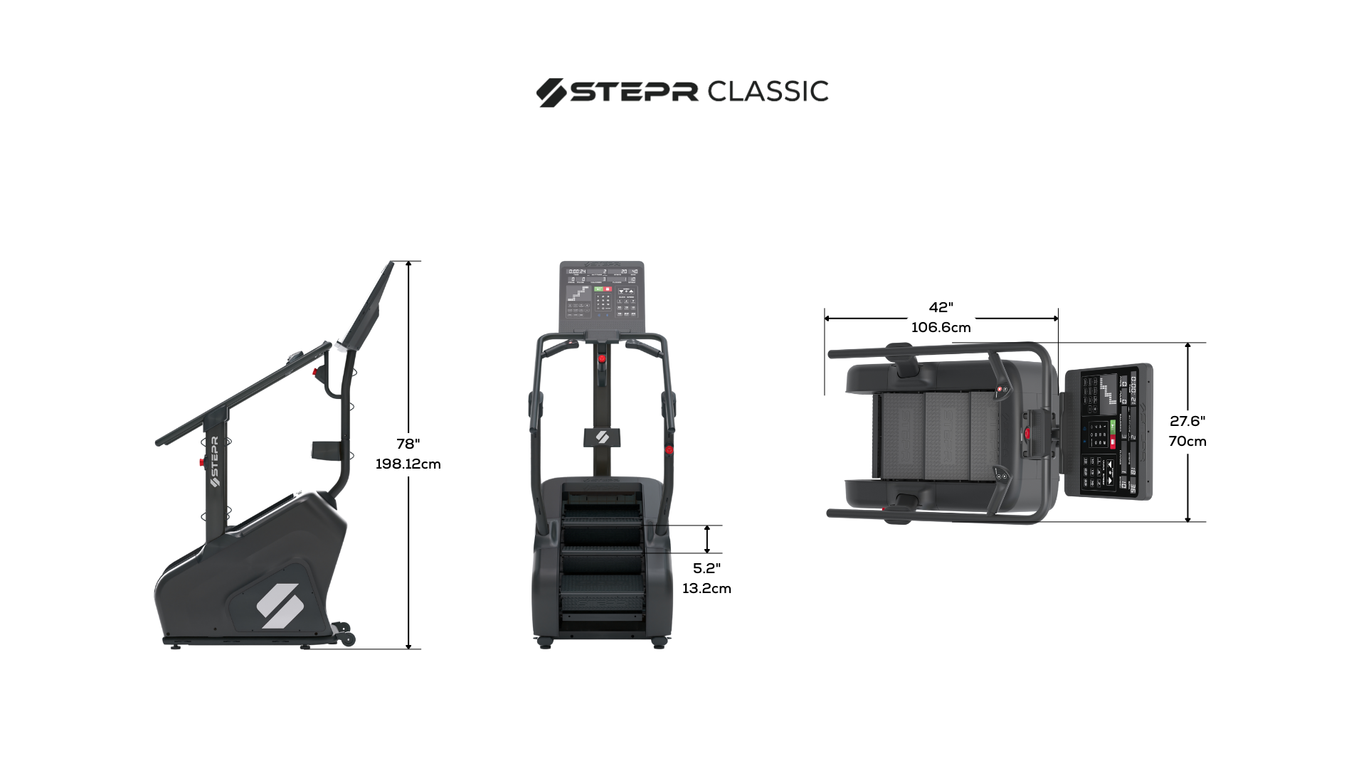 - Compatibility to the STEPR dedicated mobile stair climbing app with Coach Lead On-Demand Classes & more (*coming soon)